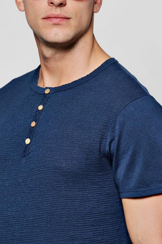 A sheath of durable cotton fabric, the Taurin Jacket is worked into a military look with two front pockets in the side seams and a welted chest pocket. Leather detailing at pockets and collar, and leather buttons and loops to close. Rounding out the look is leather elbow patches. Double vented back hem secured with leather buttons. Hannes Roether. Color Navy. 100% Cotton, 100% Lamb Leather. Spencer is wearing a size Large.
